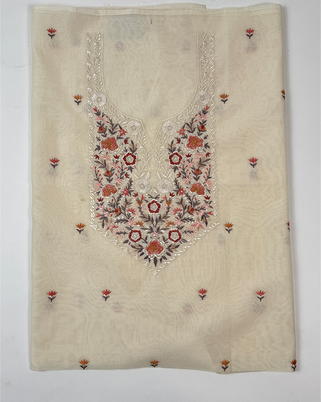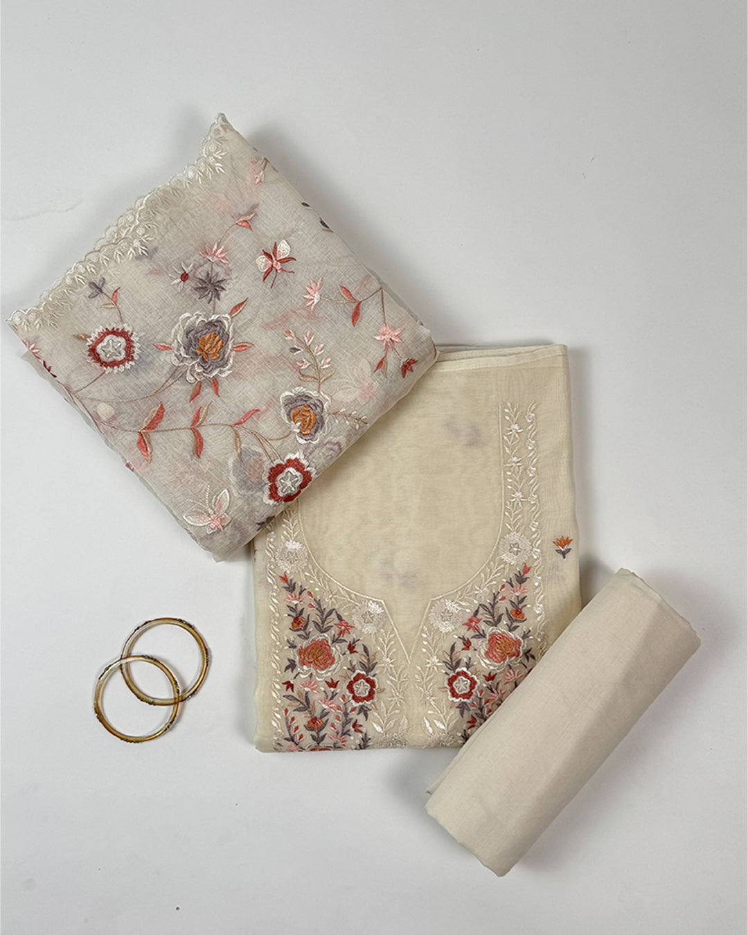 Cream Malmal Suit Set with Parsi Embroidery