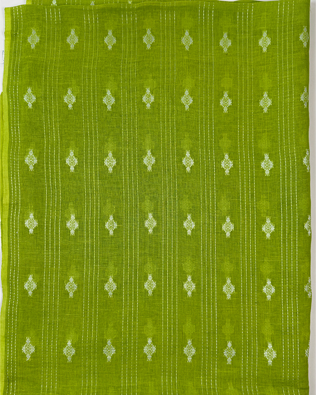 Hariyali Charm Linen Suit Set with Kantha Embroidery
