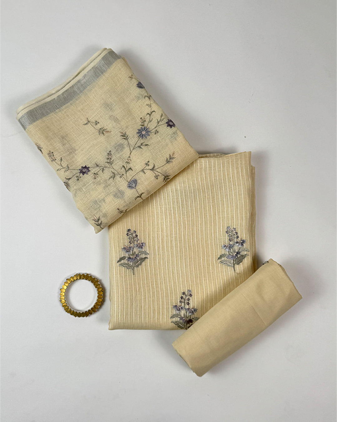 Ivory Cream Suit Set with Delicate Thread Work in linen fabric