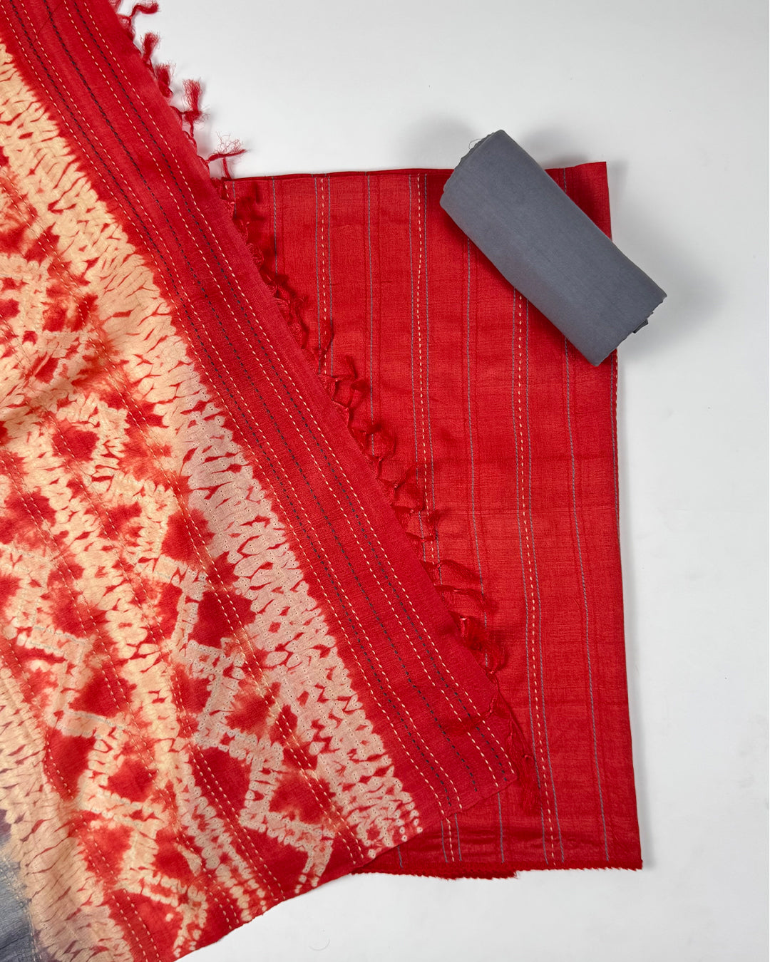 A vibrant royal rose silk suit set enhanced with intricate Kantha embroidery, offering a perfect blend of traditional craftsmanship .... Read more