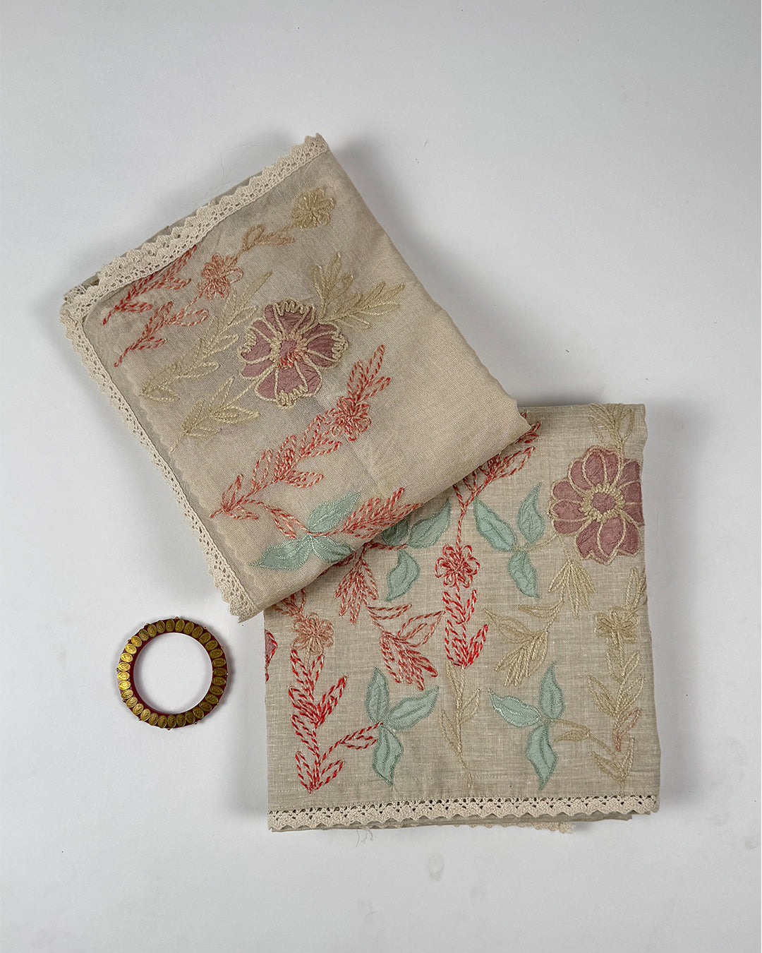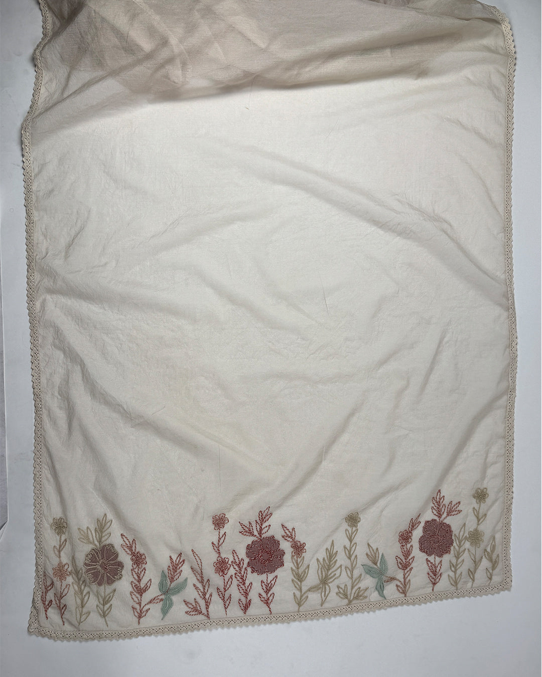 Care Instructions: Hand wash or gentle machine wash to preserve embroidery and fabric texture. Avoid harsh detergents, direct sunlight, and excessive wringing. Store in a cool, dry place folded in a cotton or muslin cloth.