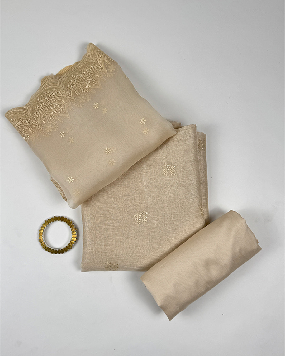 Components: 1 Unstitched Kurta (Tissue Linen) 1 Matching Unstitched Bottom (Tissue Linen) 1 Dupatta with Thread Work (Tissue Linen)