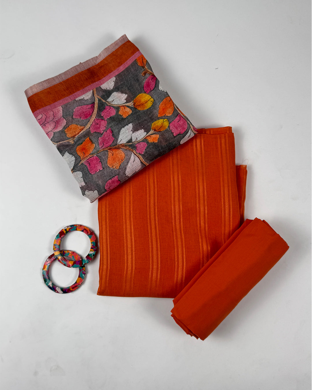 Components: 1 Unstitched Kurta (Linen) 1 Matching Unstitched Bottom (Linen) 1 Striped Dupatta (Linen)
